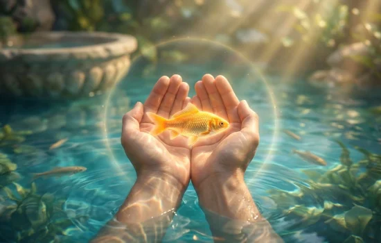 Tiniq suvdagi baliqlar: Agar baliqlar shaffof suvda suzib yurgan bo‘lsa — bu halol rizq, sog‘lik va xotirjamlikdir.